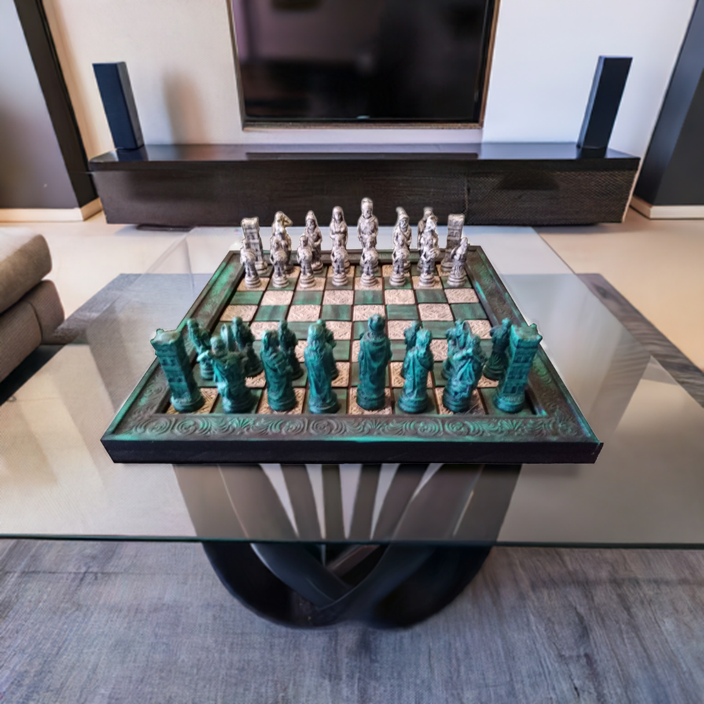 The craftsmanship behind this chess set is truly remarkable, with every element seamlessly harmonizing to create a breathtaking and cohesive whole.