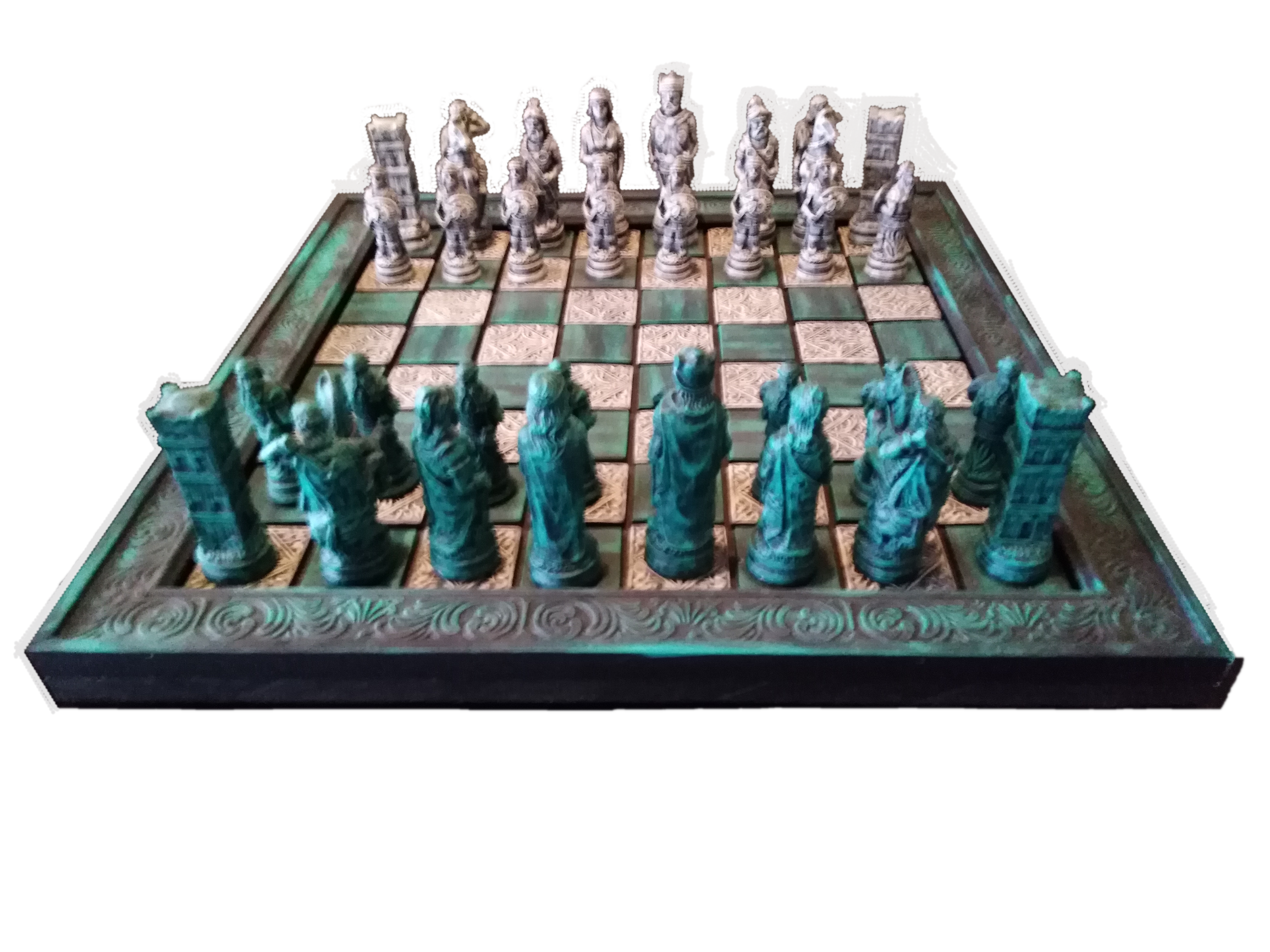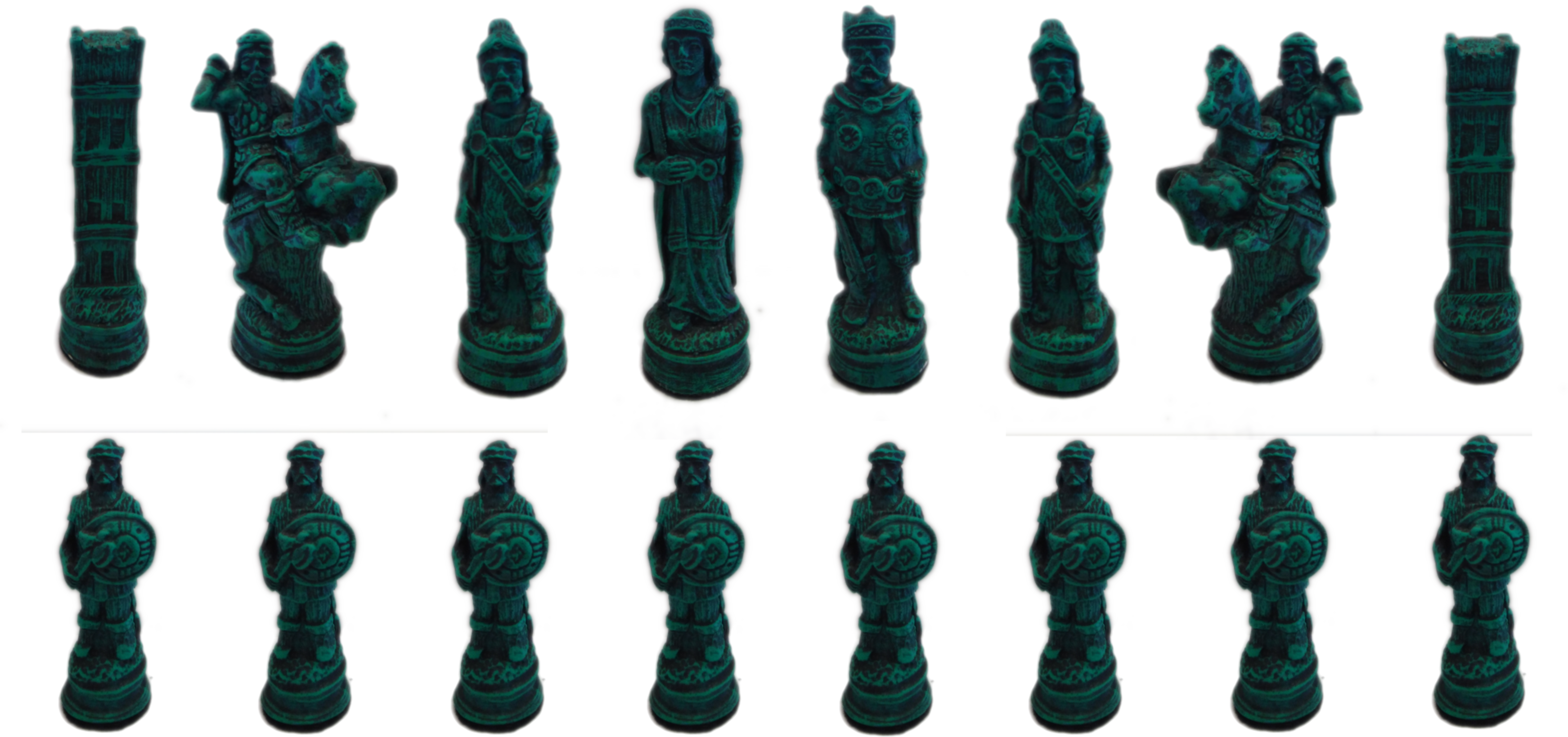 - 16 x Individual Chess Pieces (Green and black Tone)